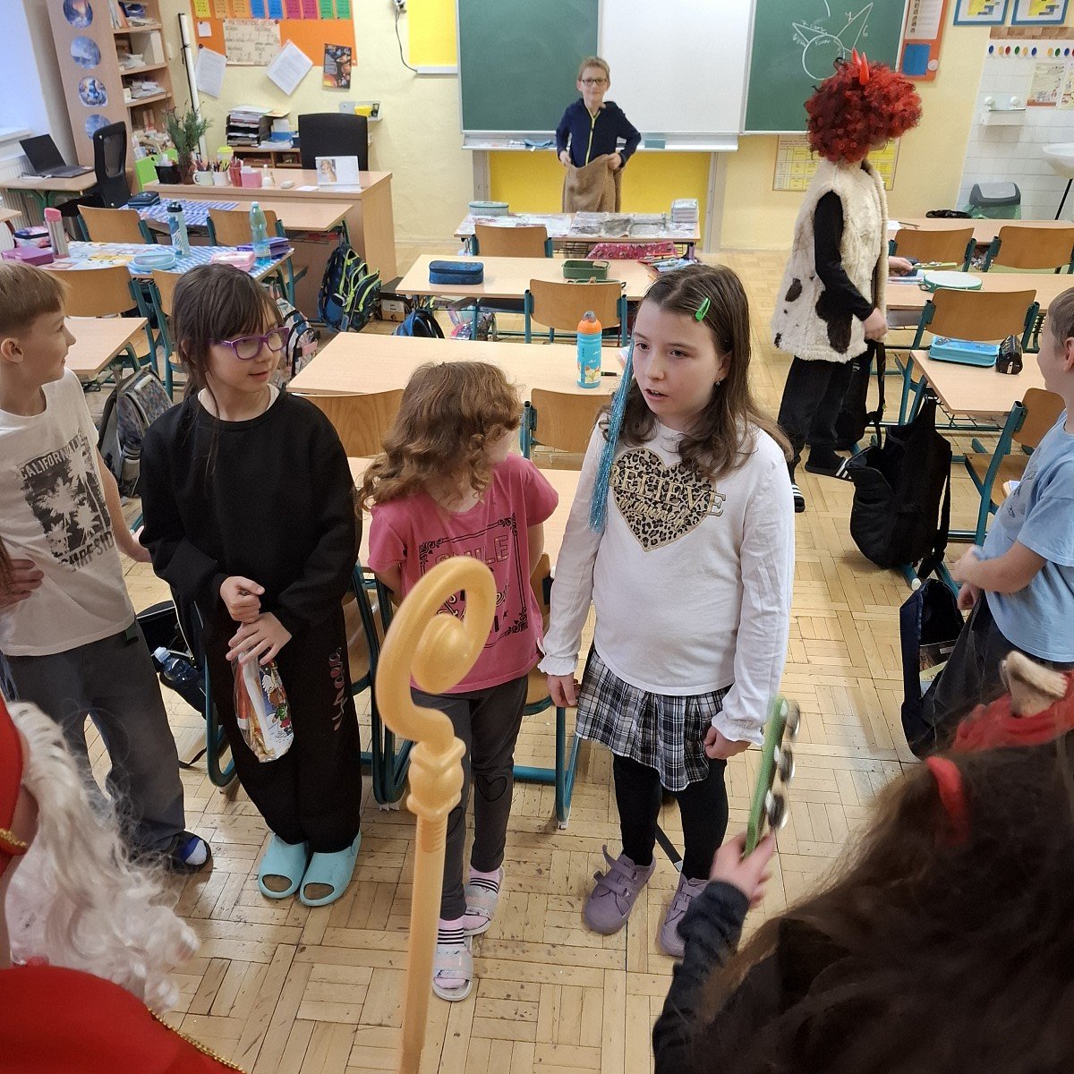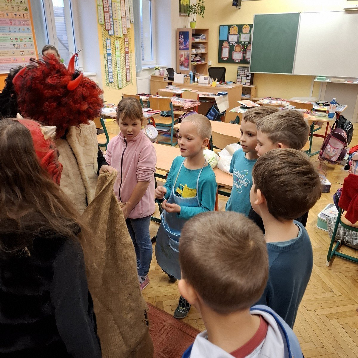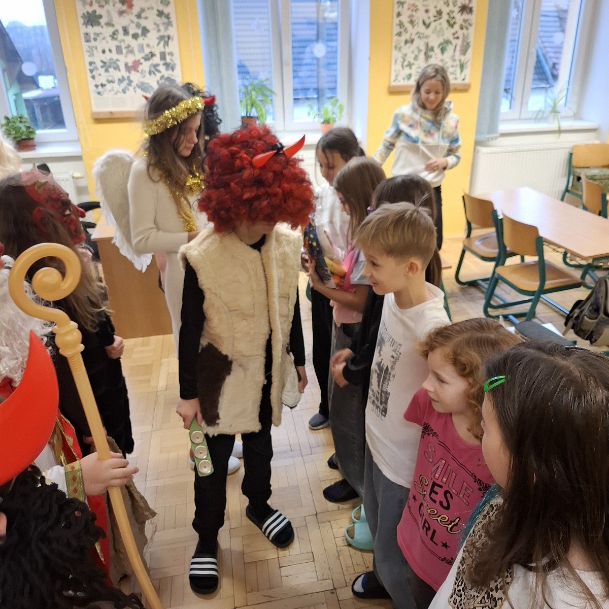 V pátek 5.12. nás jako tradičně navštívil Mikuláš s anděly a čerty. Sice byli čerti hrůzostrašní, ale kdo byl hodný, neměl se čeho bát a dostal i nadílku.