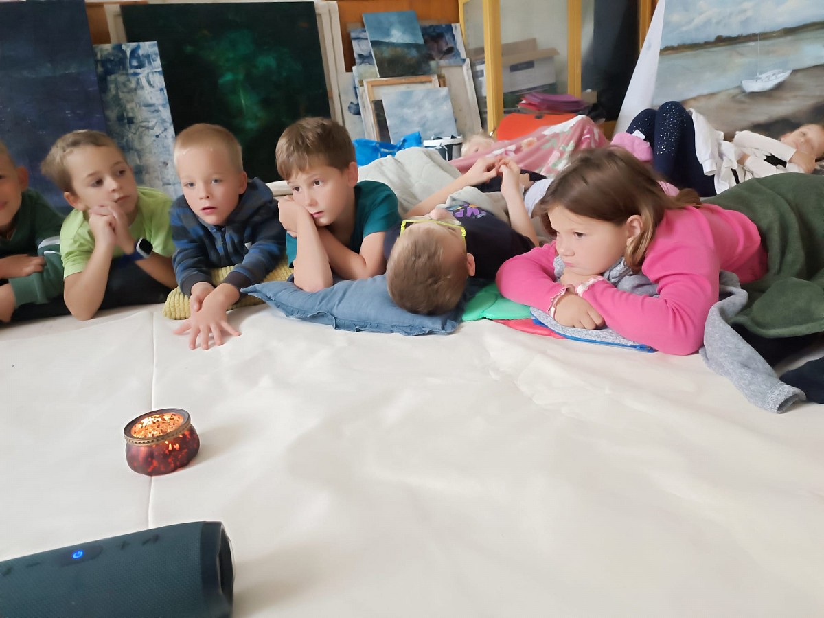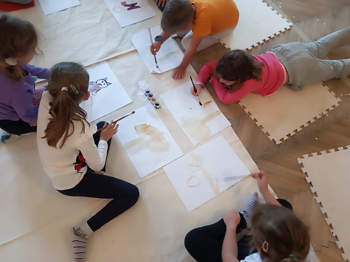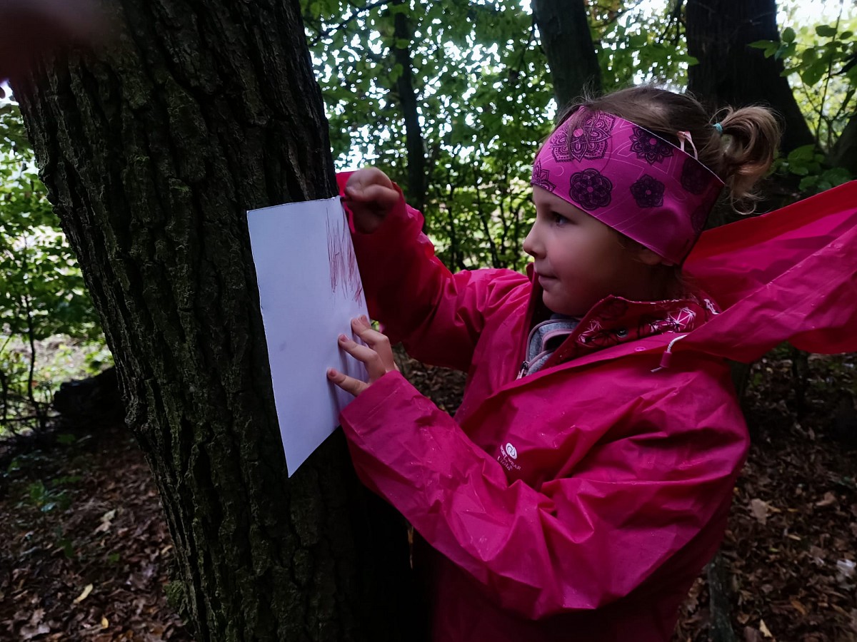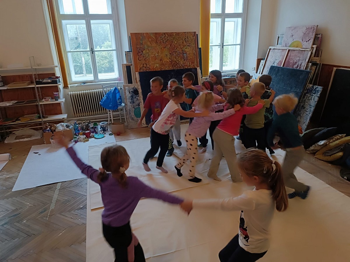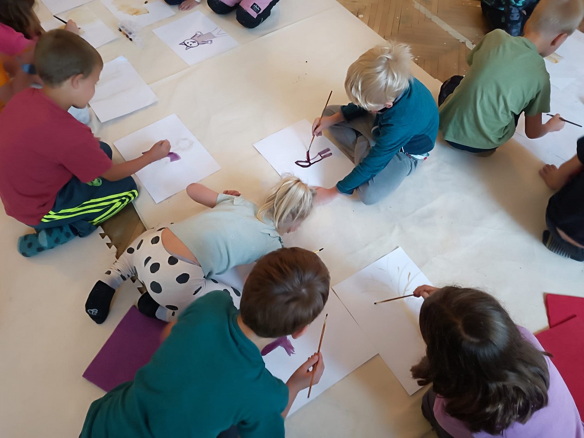 Děti tvoří za každého počasí v lese a následně v malířově ateliéru na prštickém zámku.