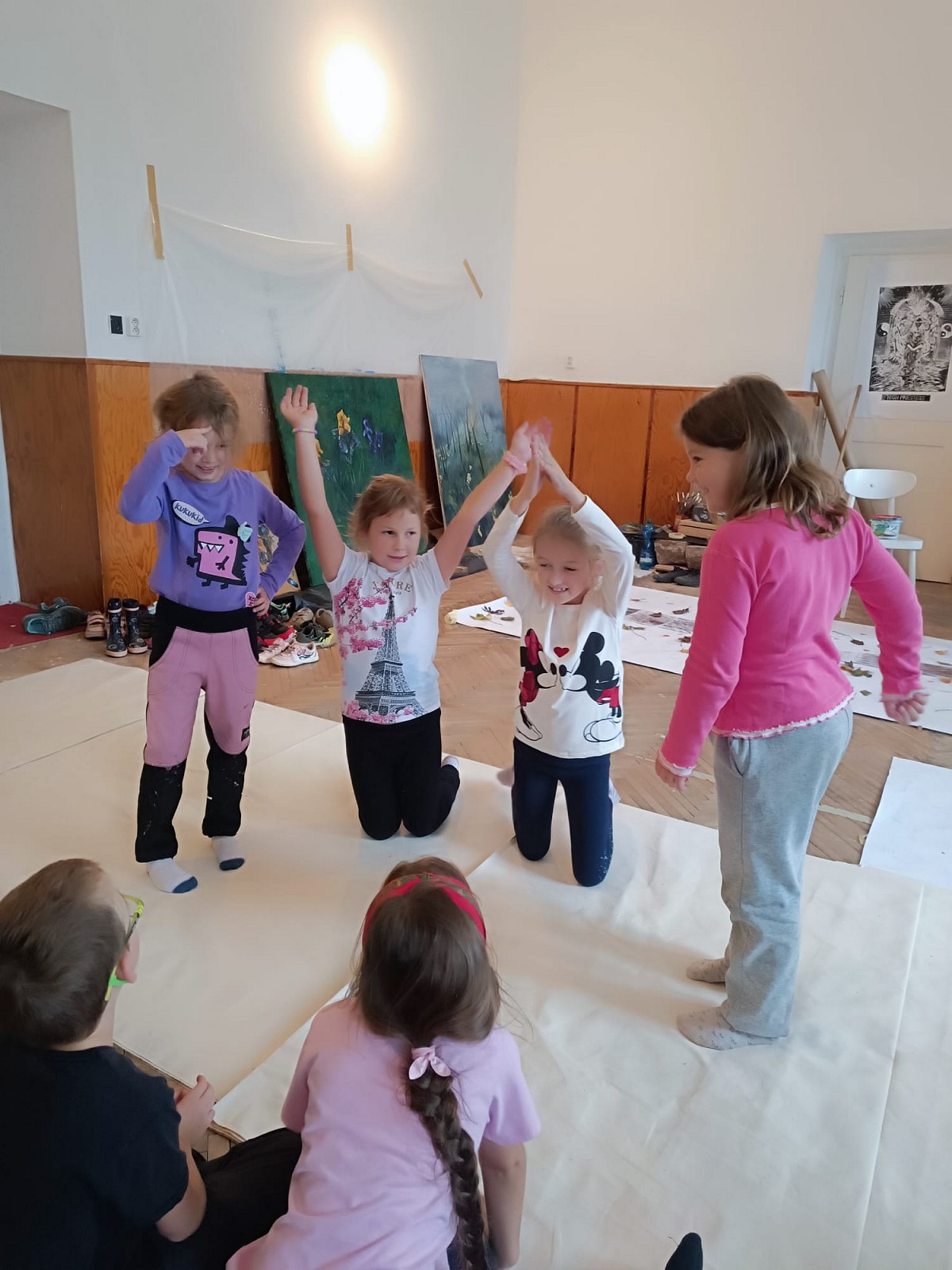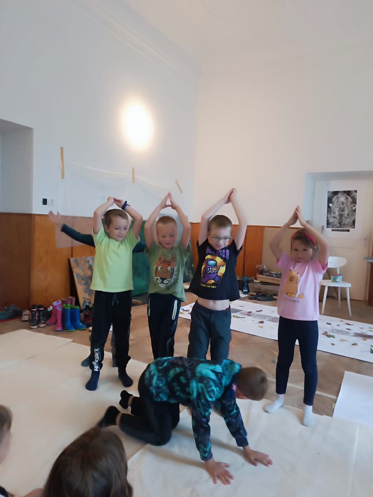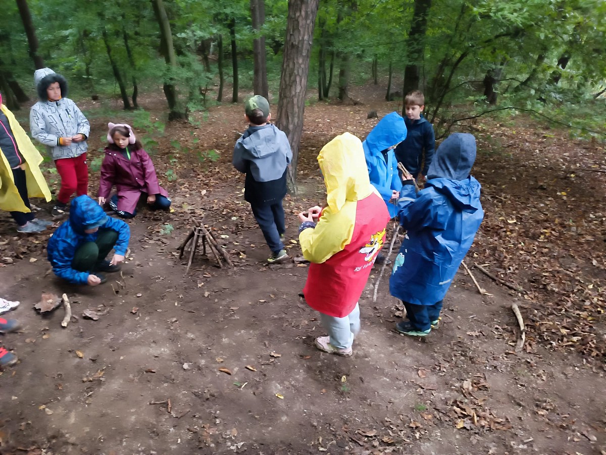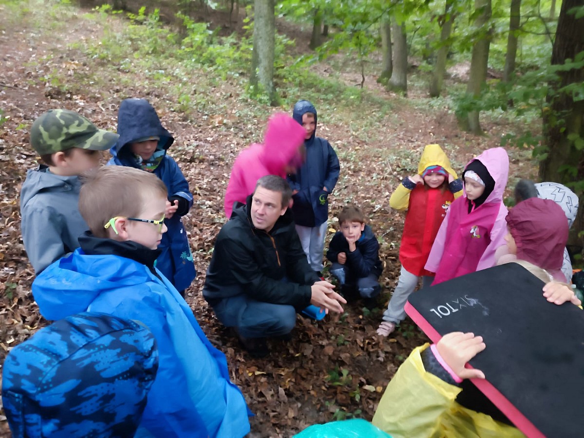 Děti tvoří za každého počasí v lese a následně v malířově ateliéru na prštickém zámku.