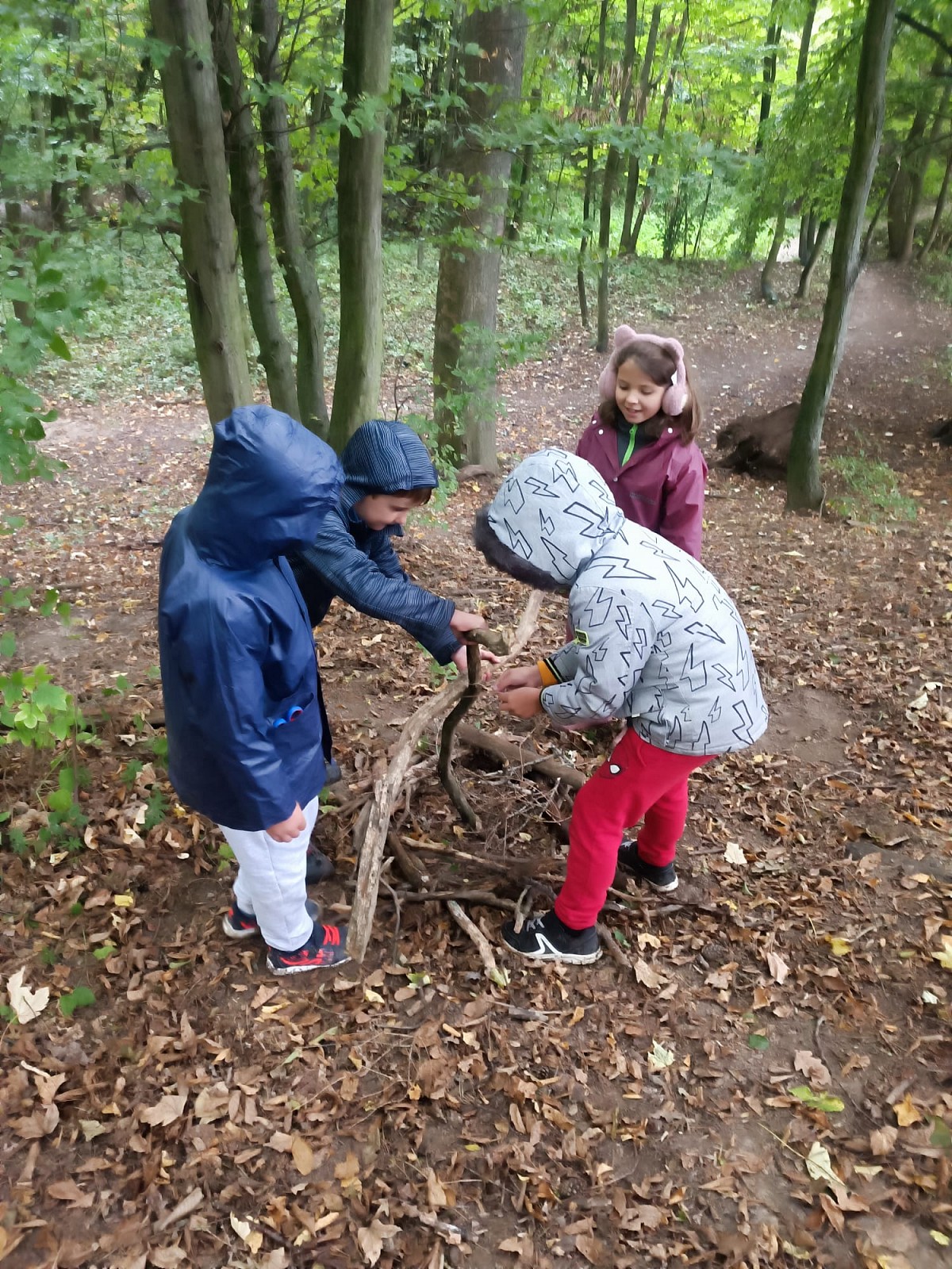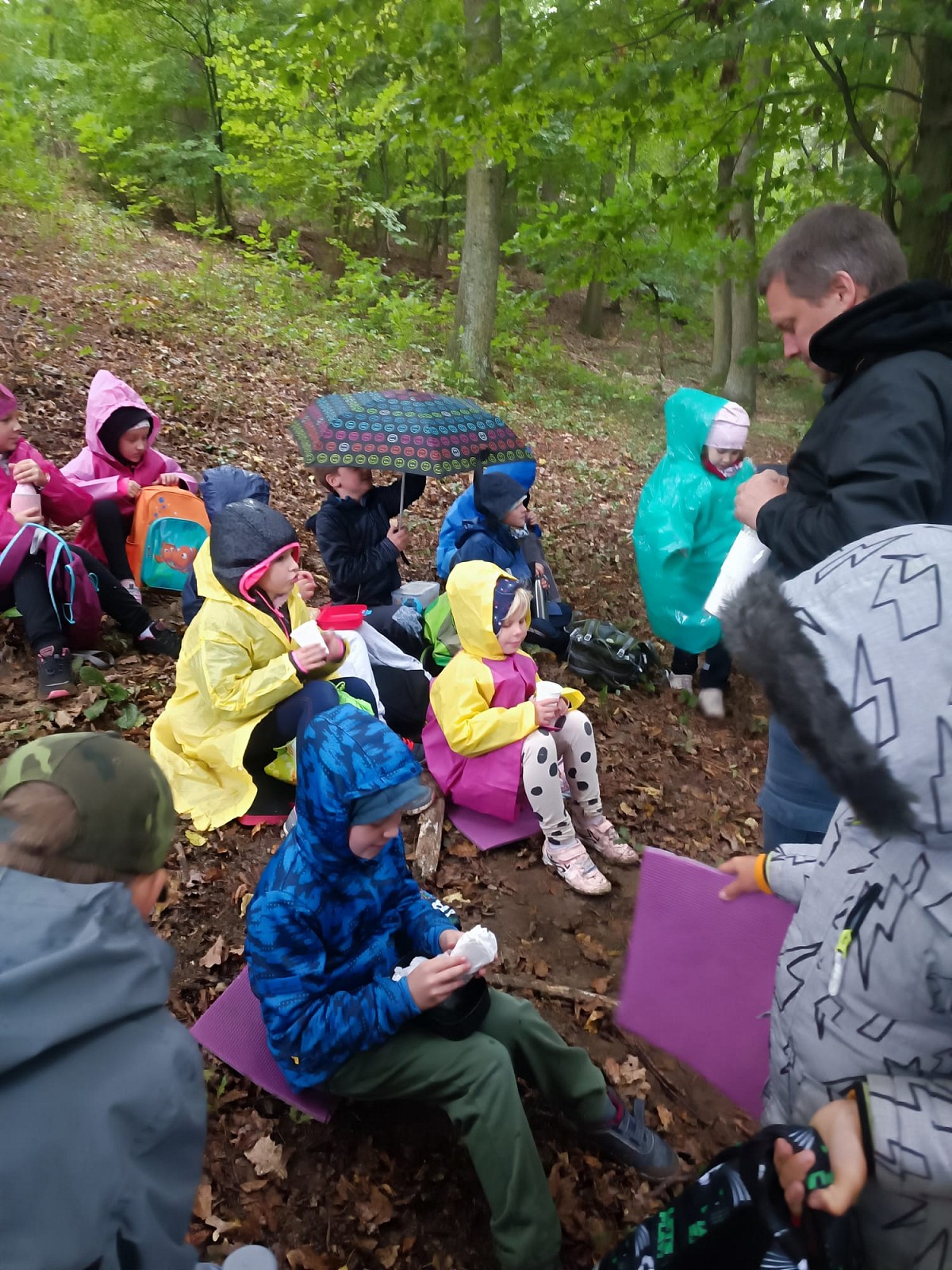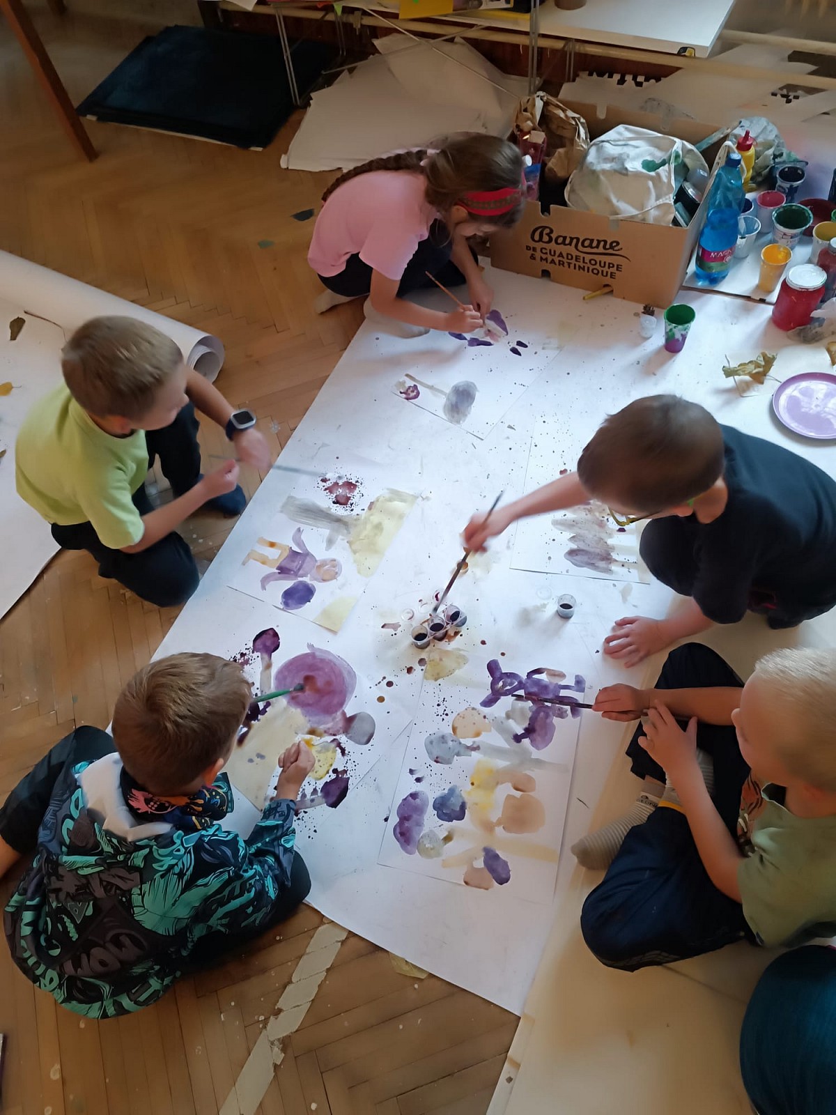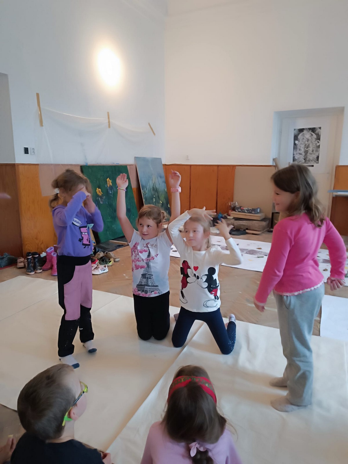 Děti tvoří za každého počasí v lese a následně v malířově ateliéru na prštickém zámku.