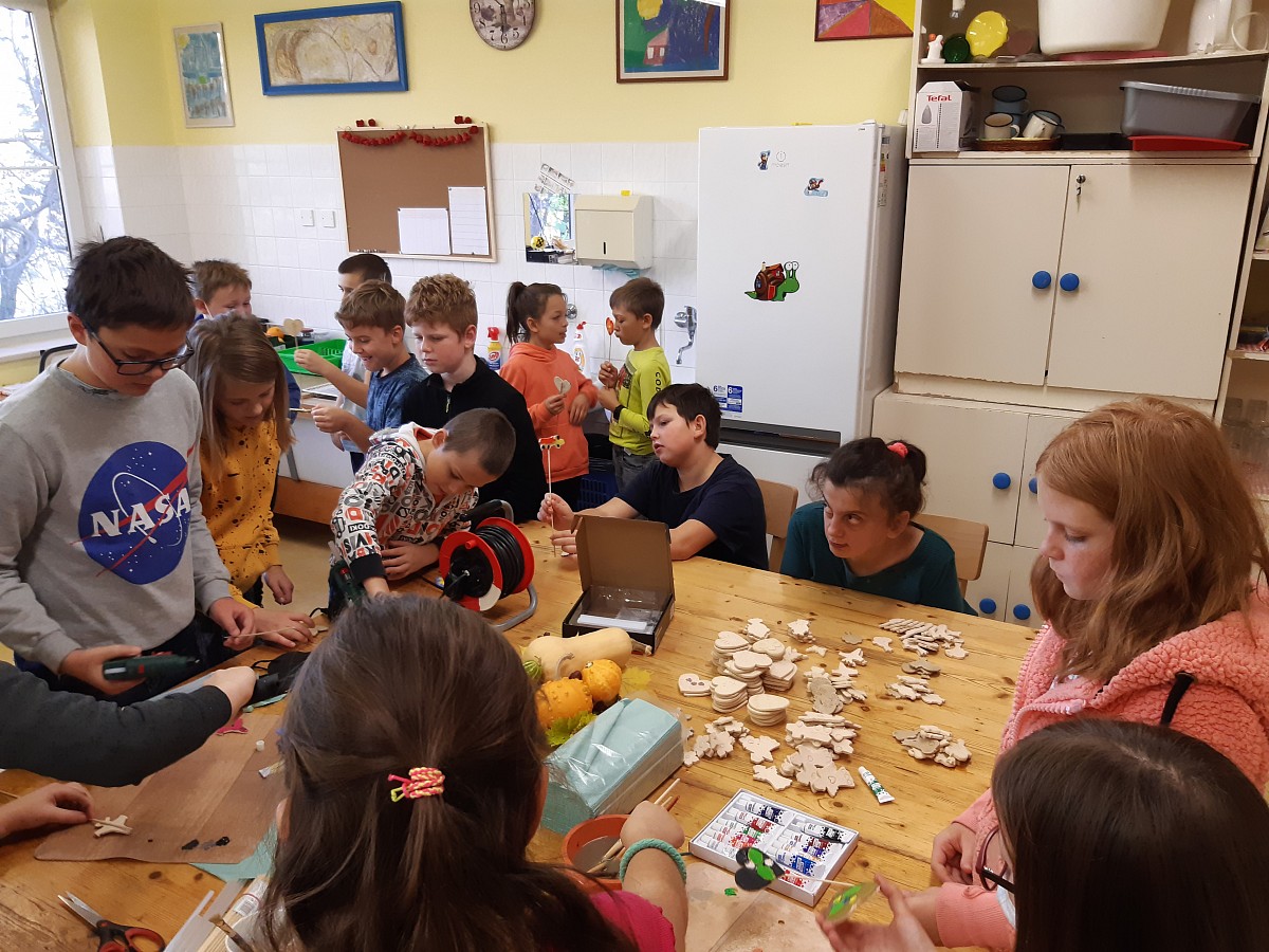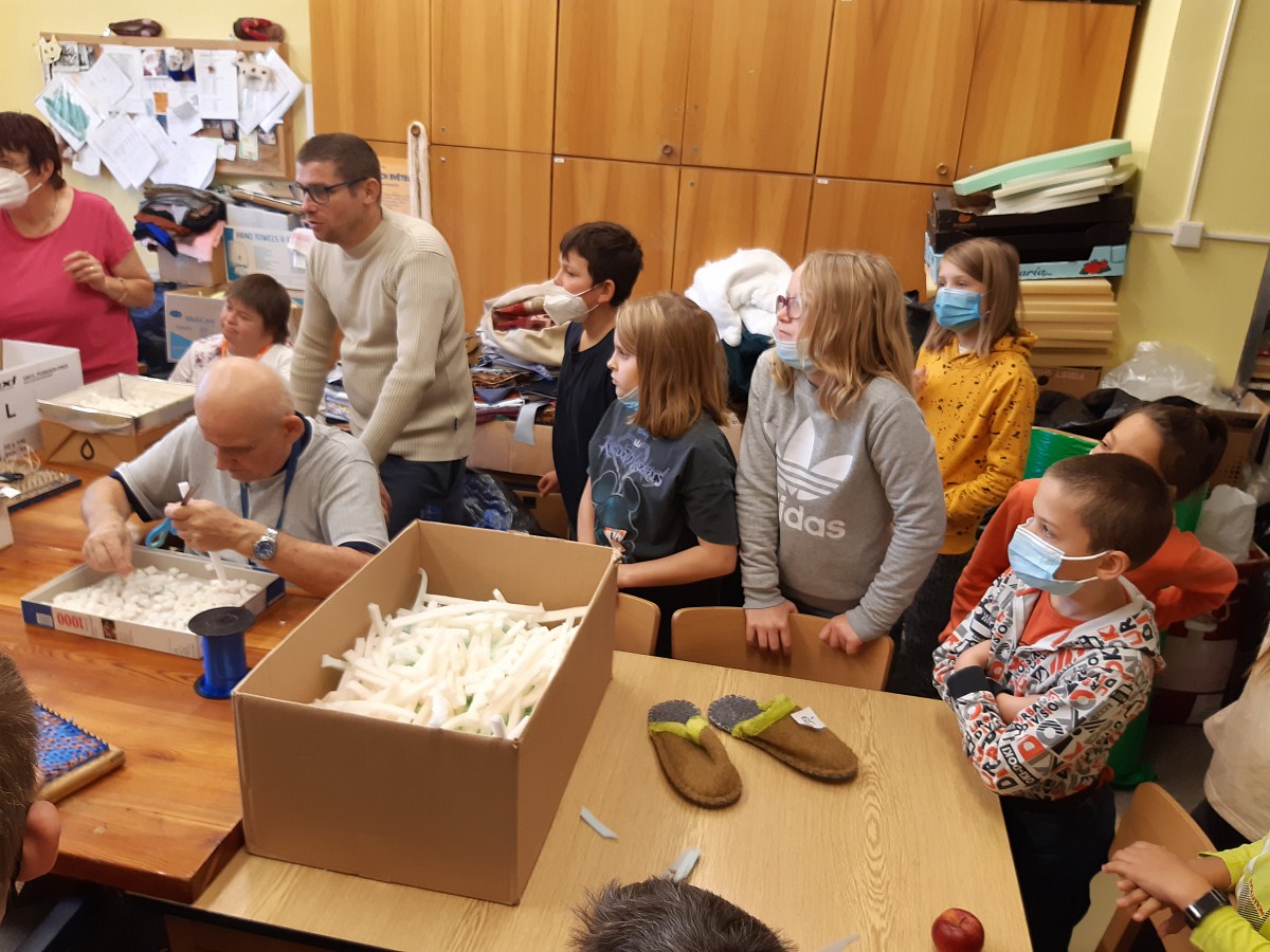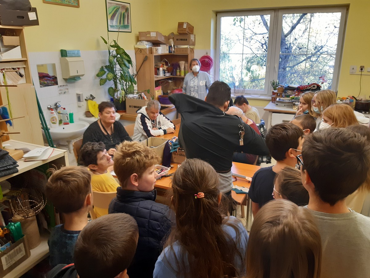 Ve dnech 25.10. a 26.10. žáci naší školy navštívili Zámeček Střelice, tedy domov pro mentálně postižené lidi. Našim dětem i pedagogům se v Zámečku velmi líbilo. Panovala tam příjemná atmosféra a děti se měly příležitost pobavit a seznámit s klienty a zaměstnanci tohoto zařízení a také zjistit, jak mentálně postižení lidé tráví v domově volný čas. Zároveň si naši žáci mohli si vyzkoušet některá témeř již zapomenutá řemesla jako např. tkaní na tkalcovském stavu, malování keramiky apod.