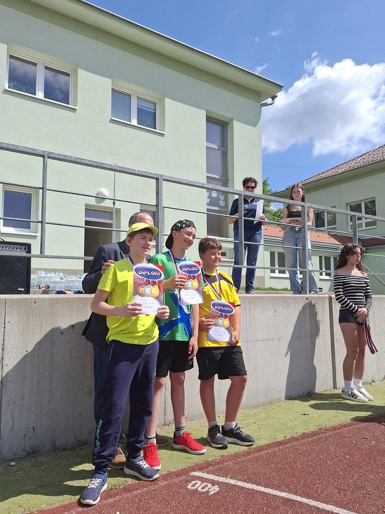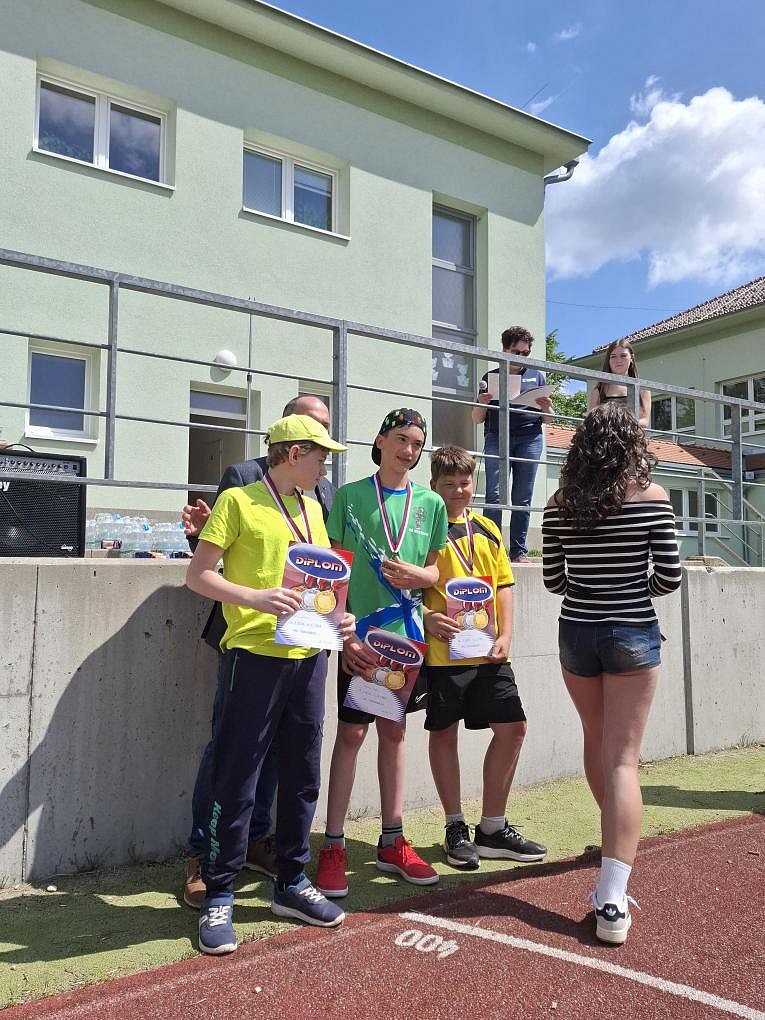 Dne 29.4.2025 se naši atleti vypravili na tradiční atletické závody do ZŠ Ořechov. Všichni naši sportovci vzorně reprezentovali školu. Obzvlášť velká gratulace náleží Patriku Hellarovi za zlatou medaili v individuální disciplíně - hod medicinbalem.